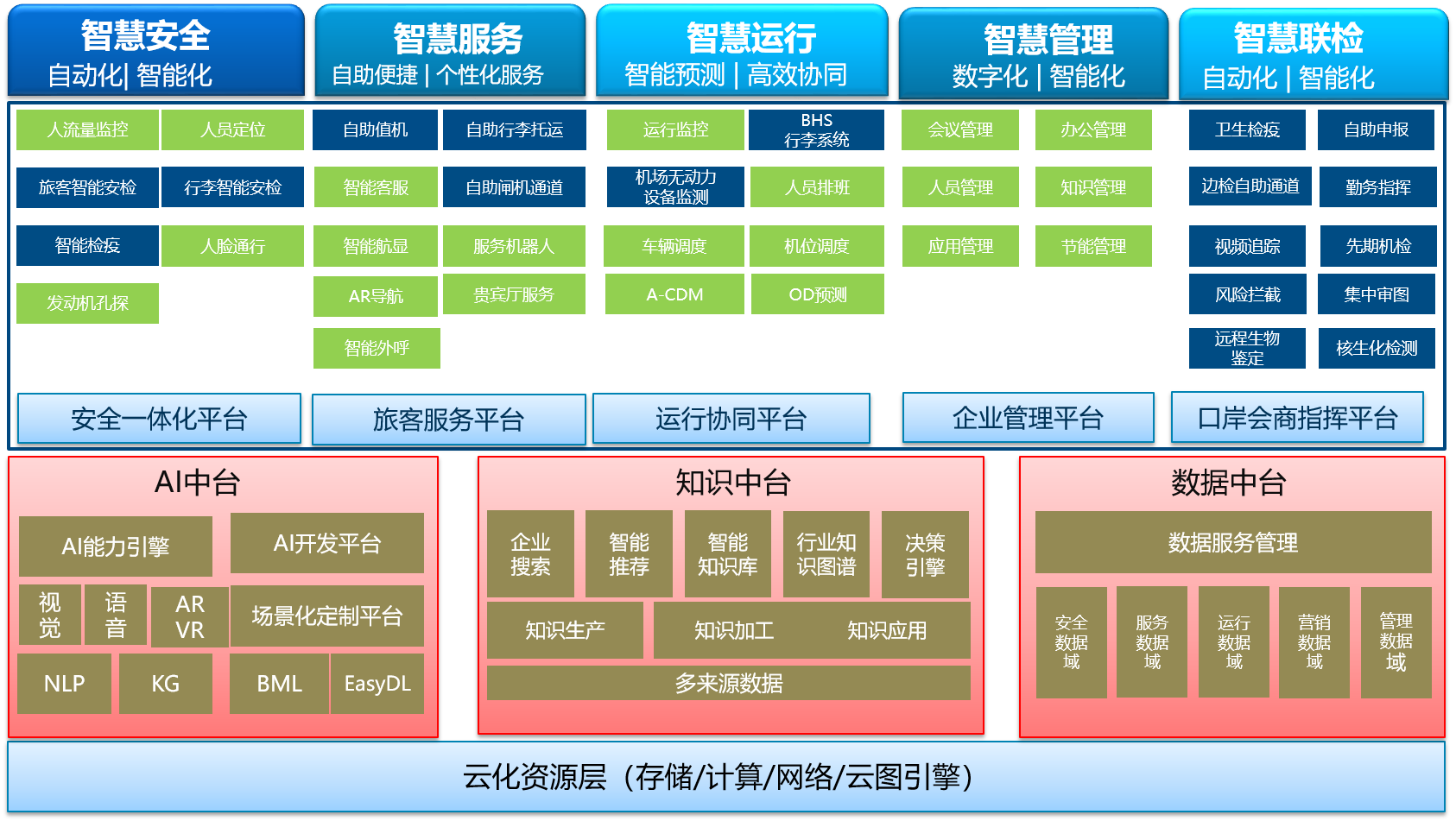 基于物聯(lián)網(wǎng)、云計(jì)算與人工智能技術(shù),通過(guò)申報(bào)臺(tái)、查驗(yàn)臺(tái)、咨詢臺(tái)、行李處理系統(tǒng)、AGV 機(jī)器人等智能自助設(shè)備、結(jié)合安檢通關(guān)效能監(jiān)控、差異化安檢等系統(tǒng)、空氣質(zhì)量與微小氣候在線監(jiān)測(cè)系統(tǒng)、會(huì)商指揮平臺(tái)等多功能系統(tǒng),通過(guò)軟硬件及線上線下結(jié)合,采集與分析各種安全領(lǐng)域的圖像與數(shù)據(jù),提升機(jī)場(chǎng)運(yùn)行安全、旅客便捷出行,提高智能化業(yè)務(wù)效率及水平,提供安全防范的一體化解決方案。助力"平安機(jī)場(chǎng)、人文機(jī)場(chǎng)、智慧機(jī)場(chǎng)"三位一體的全面建設(shè)。