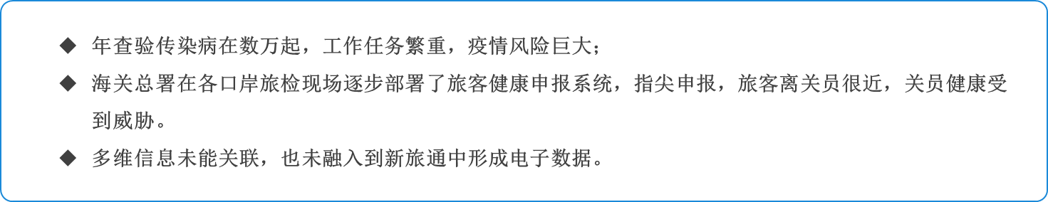 1.關(guān)員痛點:容易交叉感染,關(guān)員健康受到威脅;